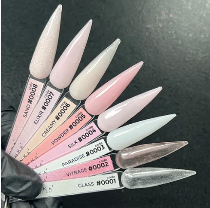 DNKa’ Acryl Gel é um material versátil que permite fácil modelagem em moldes ou dual forms, proporcionando um aspecto bastante natural e corrigindo a arquitetura das unhas naturais. Com o uso deste produto, você pode facilmente fortalecer e restaurar unhas, bem como reparar bordas danificadas ou rachaduras. Com consistência macia e autonivelante, esse material é fácil de trabalhar e reduz a necessidade de lixamento excessivo. Pode ser facilmente distribuído na superfície com pincel macio e líquido especial, e não causa sensação de queimadura durante a polimerização. Após a cura, deixa uma leve camada pegajosa.