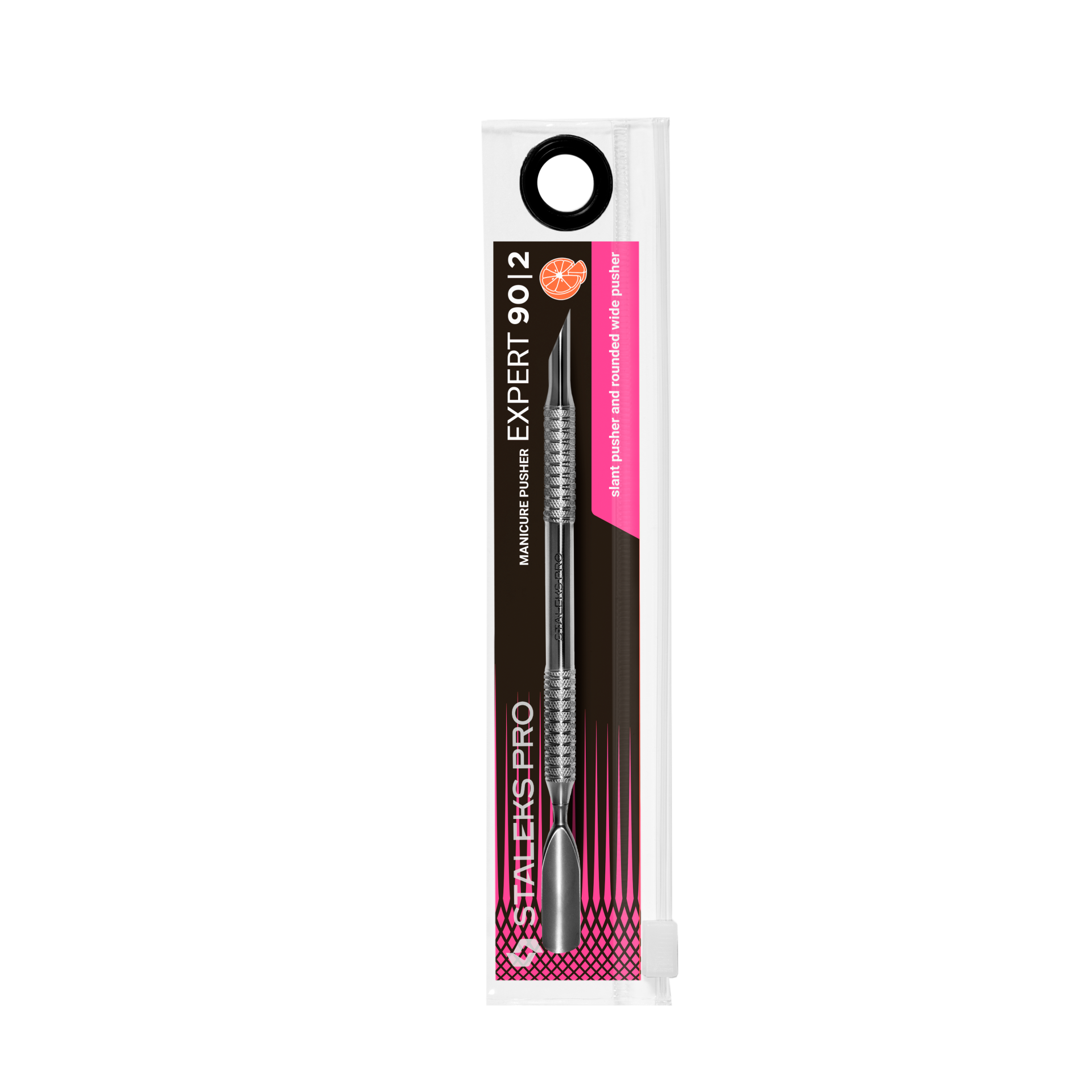 - A parte funcional, “empurrador largo e arredondado”, é projetada para levantar e empurrar a cutícula;