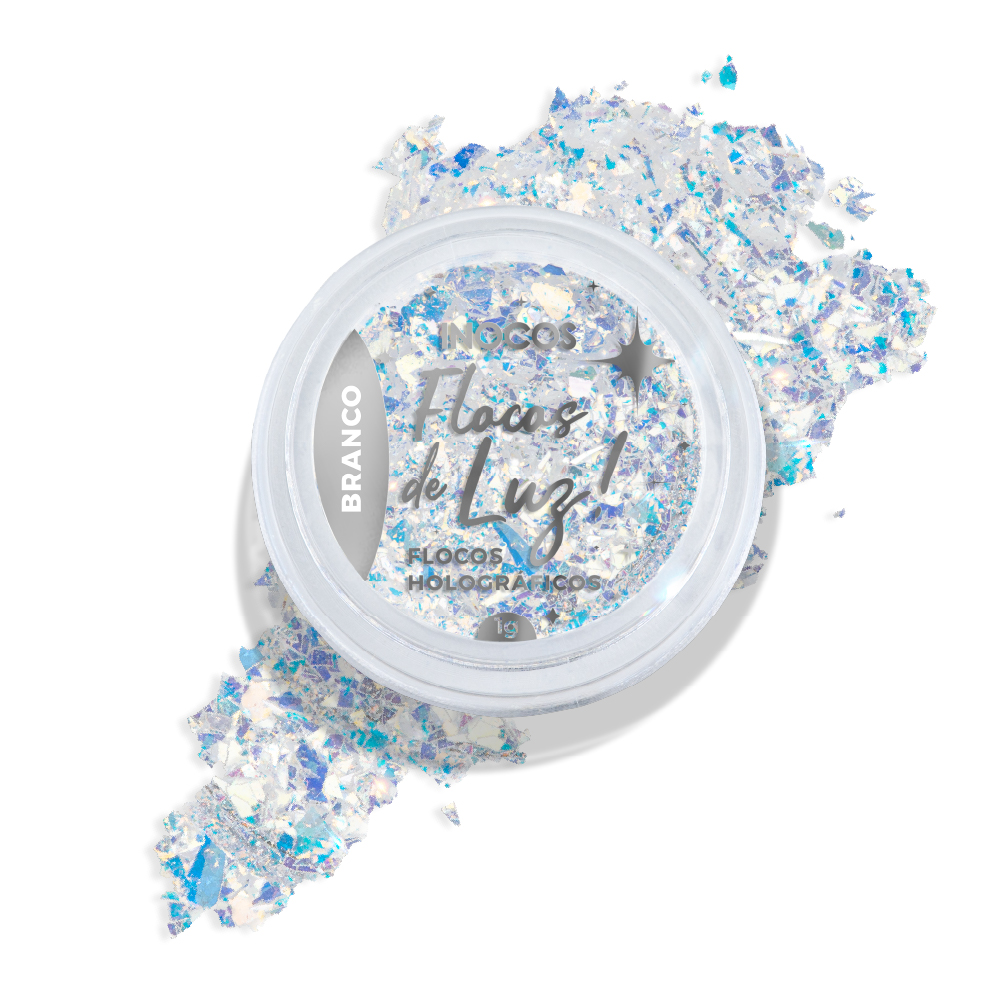 Cor Branco. Flocos holográficos.