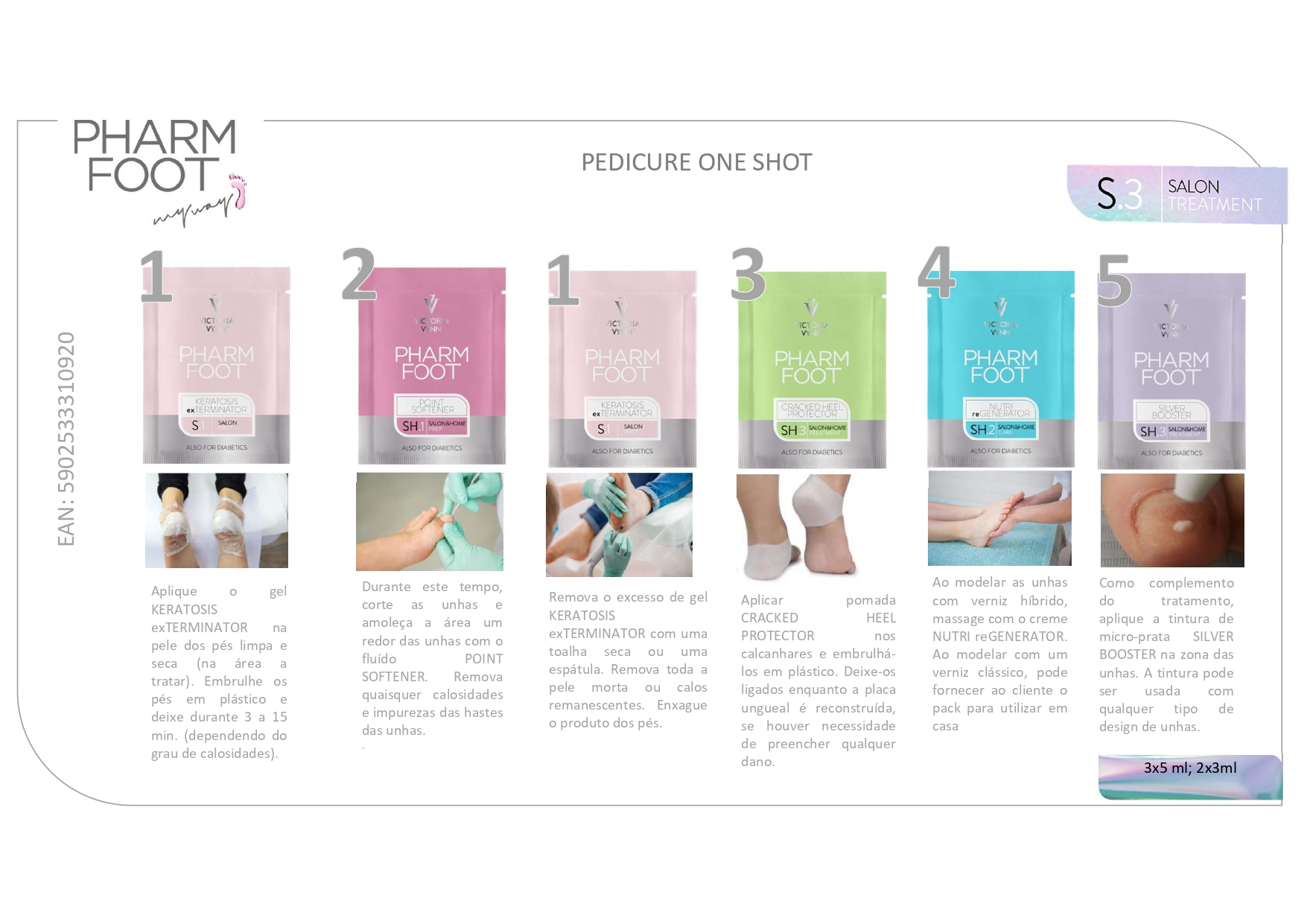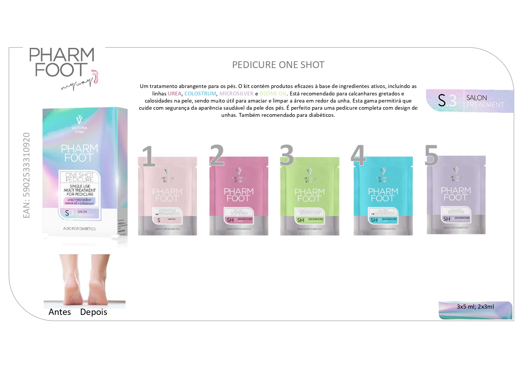 Pack de 5 unidoses para uma pedicure de luxo completa.